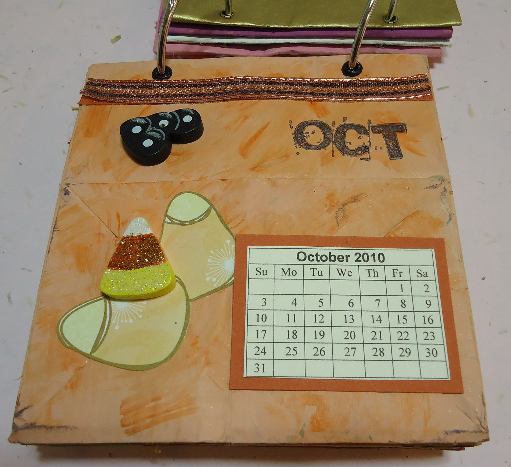 4. Time Flies By--I made a paperbag calendar. Each one has a pocket on front and a pocket at the bottom to put notes and things in.